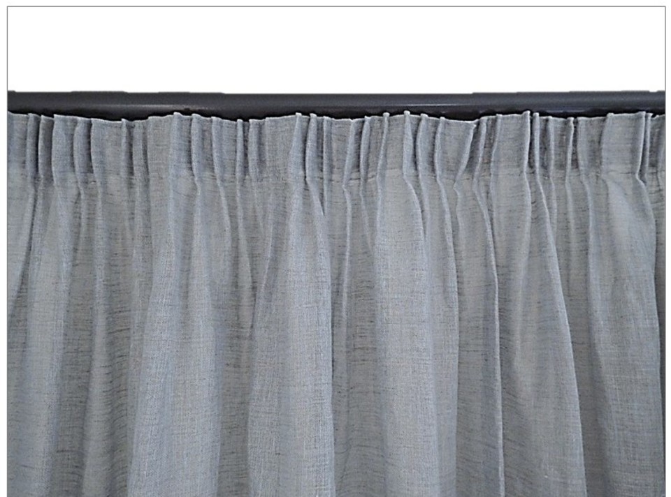 Pencil Pleats – can be used for most fabrics but especially ideal for lighter, thinner ones or when you want to cut back the fullness – eg. under pelmets. Also suits sheers.